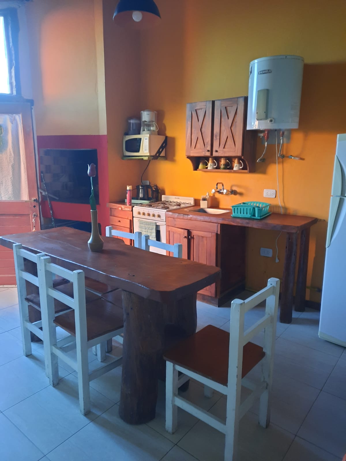 Cocina completamente equipada (Horno microondas, Cafetera eléctrica, Exprimidora eléctrica, Tostadora eléctrica, Heladera con freezer)